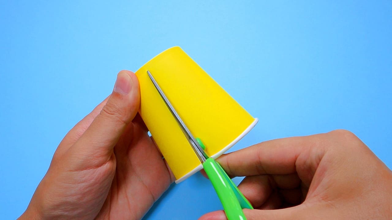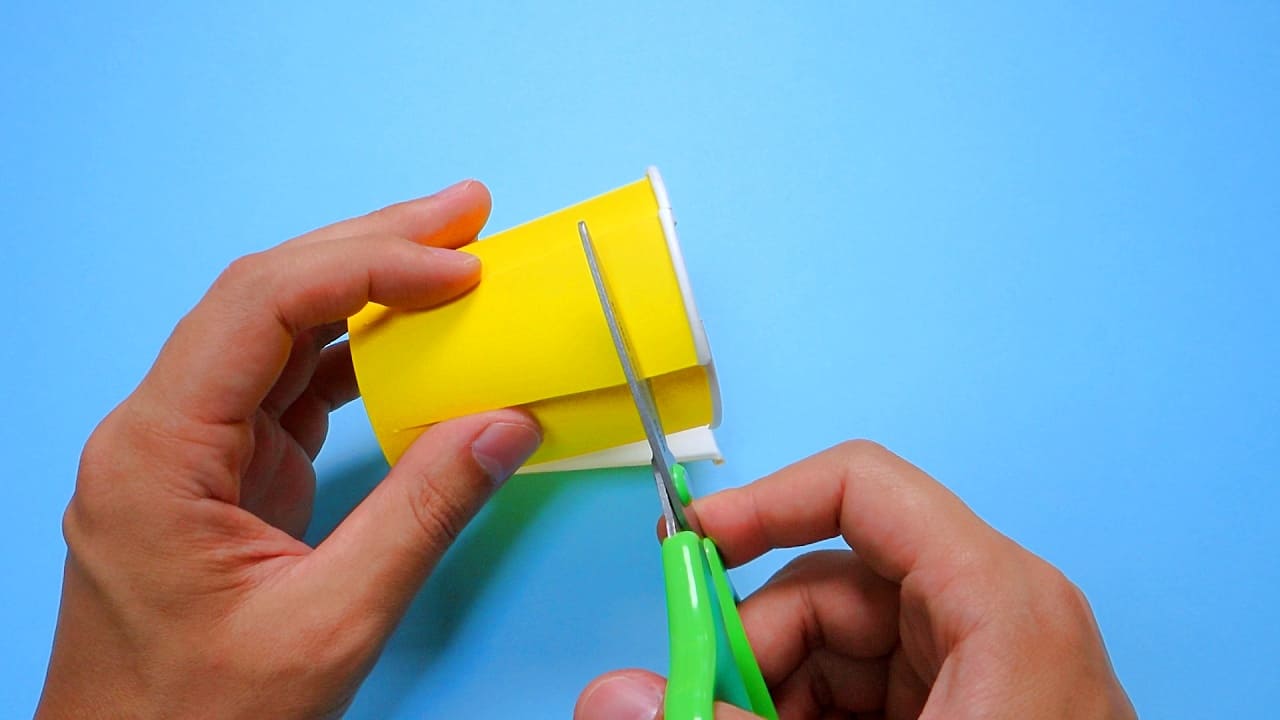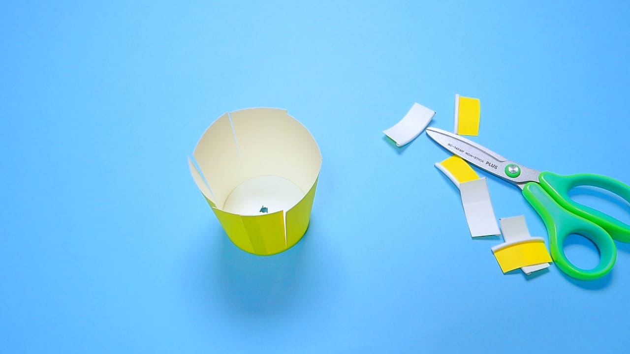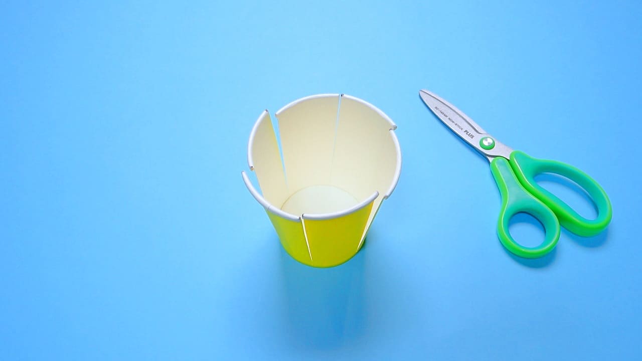 紙コップに切り込みを入れる