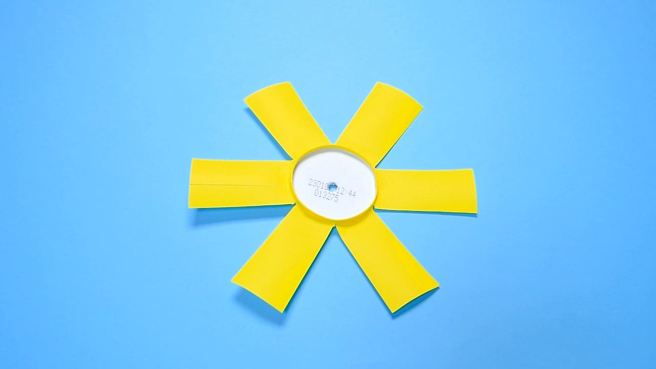 セロハンテープで貼ったら、紙コップ竹とんぼの完成です。