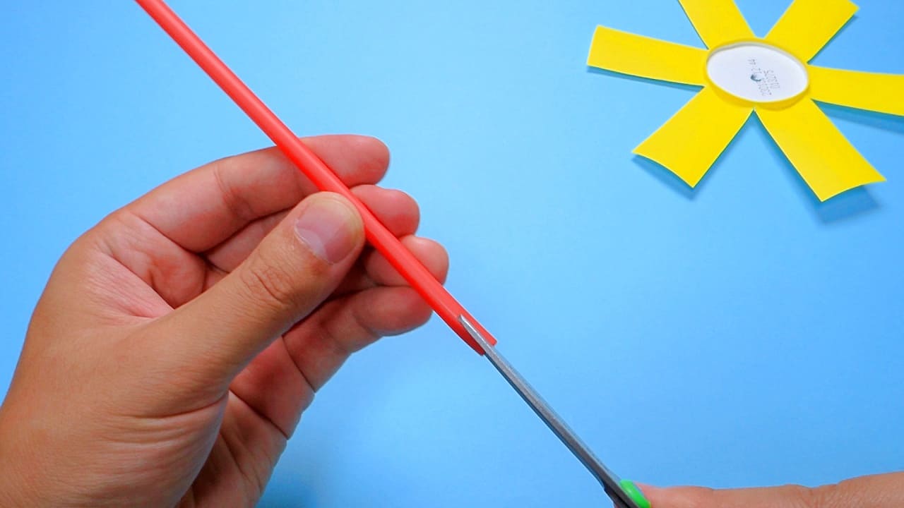 ストローに切り込みを入れて十字に開く