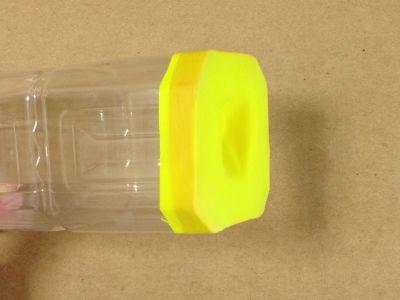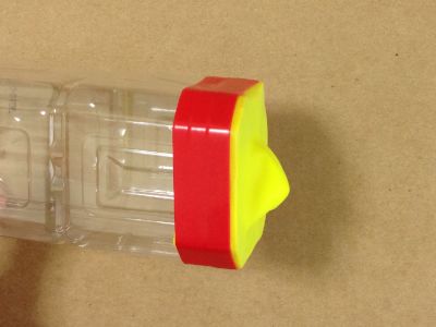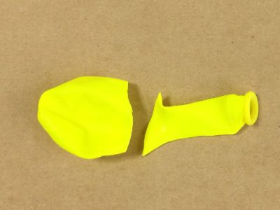 風船の丸くなり始めるくらいの部分でカットし、ペットボトルの底にかぶせます。