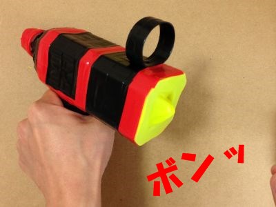 ある程度引っ張ってから手を放すと、「ボンッ」という音とともに空気の玉が飛んでいきます。