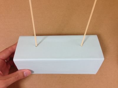 1本の牛乳パックのそれぞれの穴に竹串を差し込みます。