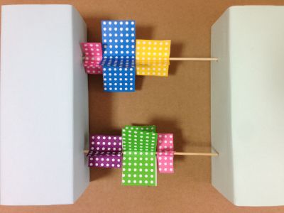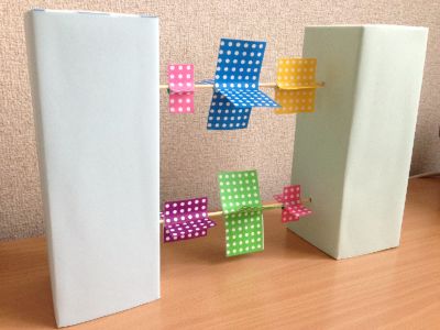 的の位置を調節すれば、くるくる回る割り箸ゴム鉄砲の的のできあがりです♪