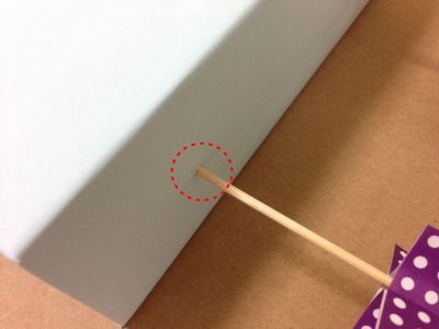 もう1つの牛乳パックの穴にも差し込んで、竹串をボンドで固定します。