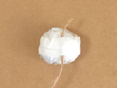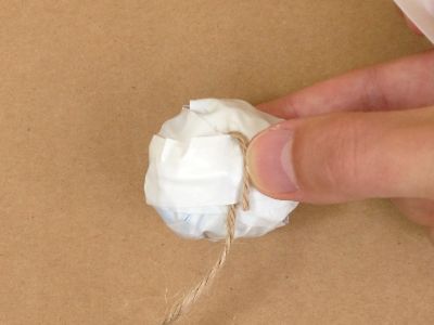 ヒモの先を折って、テープで上から固定します。