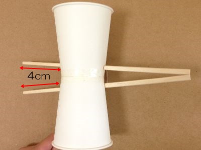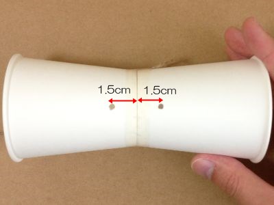 紙コップ同士の底を合わせて、テープで巻くようにしっかり固定します。