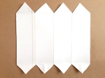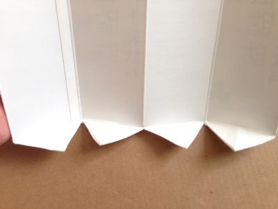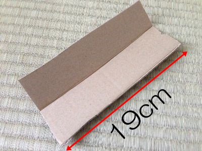 ダンボールを細長く切り、半分に折っておきます。タテ19㎝で、ヨコは7~10㎝(アバウトでOK)くらいです。
