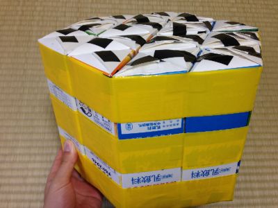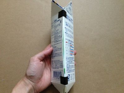 なんでも、80キロくらいまでなら耐えられるとか……牛乳パックおそるべし(笑)
