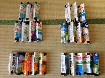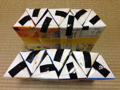 残りの牛乳パックも同じように作ります。7本セットを2組、5本セットを2組に分けておきましょう。