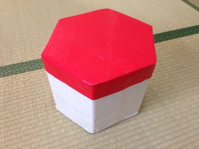 あとは好きなデザインに仕上げてください。ここでは、赤と白の布テープを貼って仕上げました。