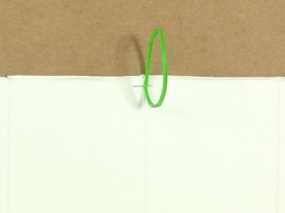 中心の上の部分に、輪ゴムをホッチキスで止めます。