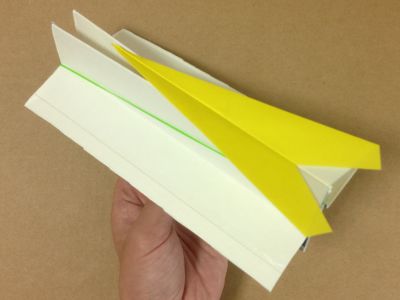 折り紙でも紙飛行機もちろん作れるのですが、耐久力が低いため、この発射台で飛ばしていると、すぐにヘタってしまいます。