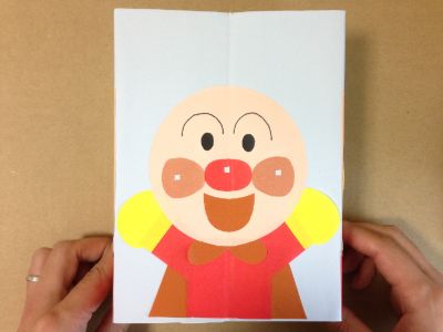 アンパンマンは子供に大人気なので、いないいないばあにしてもかなり喜んでくれます。画用紙を切って貼り合わせて作りました。