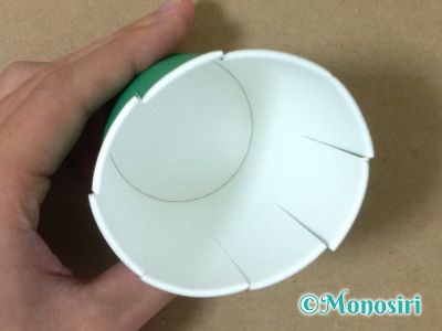 ※紙コップは特殊な形をしているので、一度別の紙に型を取り、その型に合わせて、画用紙を切ると失敗が少ないです。