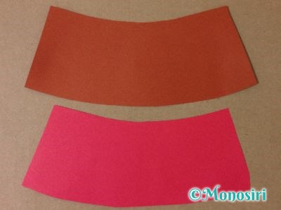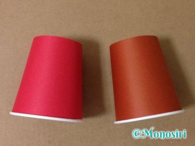 赤と茶色の画用紙を、紙コップの形に切ります。