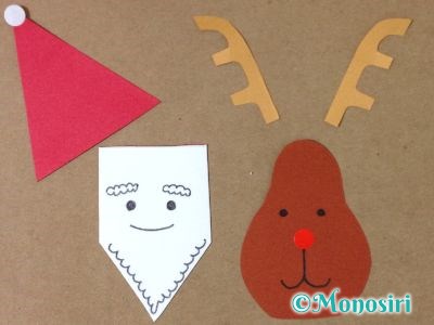サンタクロースとトナカイの顔を、画用紙を切って作ります。