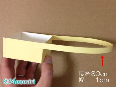 牛パックに画用紙を貼り付けます。手綱な長さ30センチ、幅1㎝で作りました。