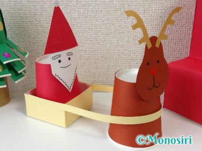 このページでは紙コップと牛乳パックを使った「ソリに乗ったサンタクロースとトナカイ」の作り方を紹介しています。