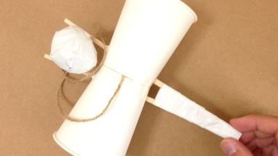 もう一つの紙コップは、そのままジャンプ台として使います。